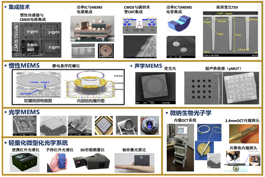 1)MEMS实验室,涵盖光学、声学、惯性、RF、三维集成、CMOS-MEMS集成等方向;