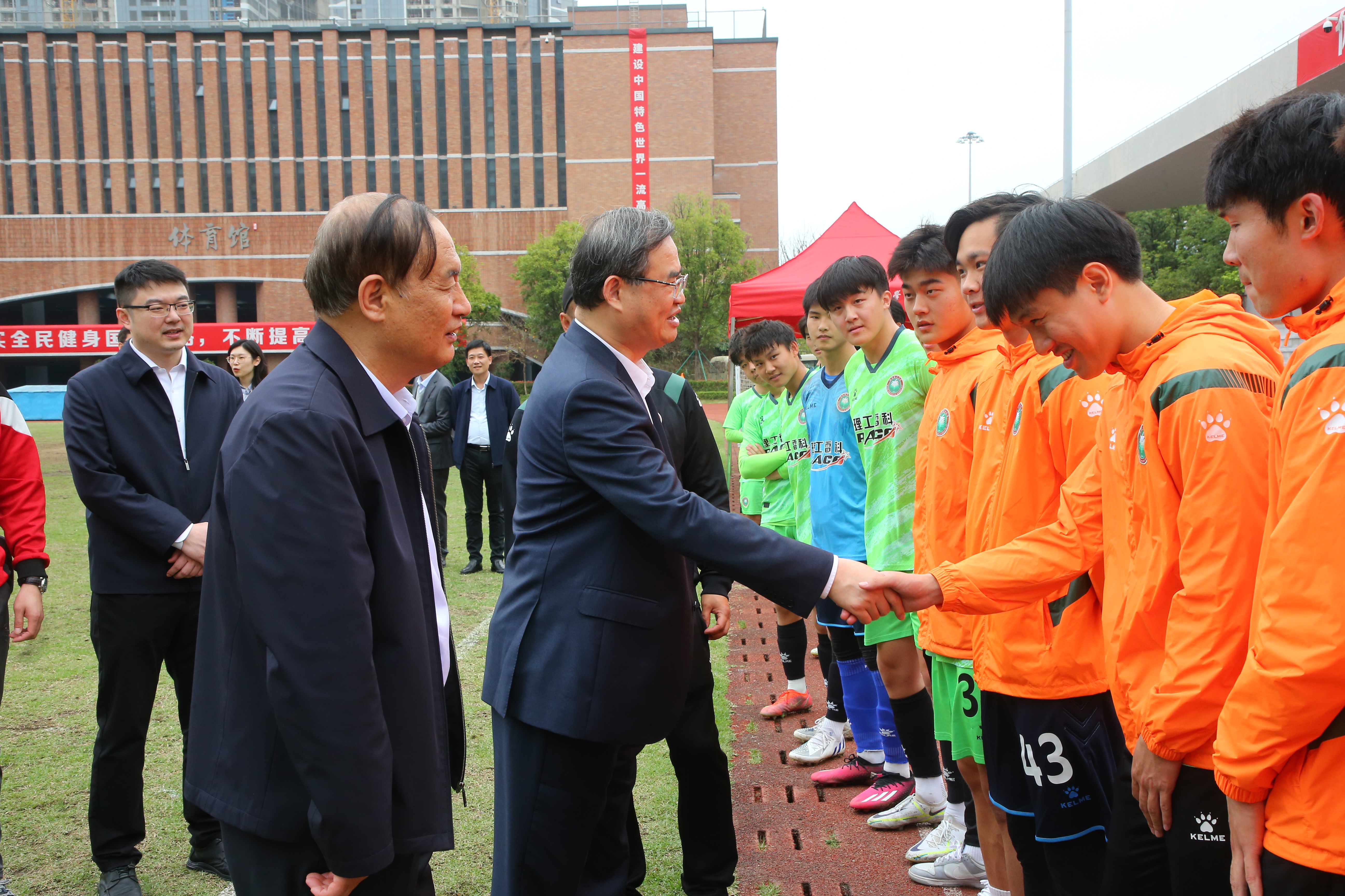 会前,张军一行参观了学校校史馆、国际数学资料中心,了解校园文化建设等情况,并与朱伟华共同为北理工-深中友谊足球赛开球。